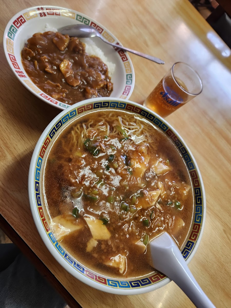 If you're in the mood for something with a bit of spice, the 麻婆ラーメン大盛り is a must-try. This dish brings together the bold flavors of spicy mapo tofu with ramen, making for a satisfying and unforgettable meal. Additionally, the 五目チャーハン (Five-ingredient fried rice) is a favorite among regulars, as it offers a savory mix of vegetables, meat, and egg, creating a well-balanced and flavorful dish.