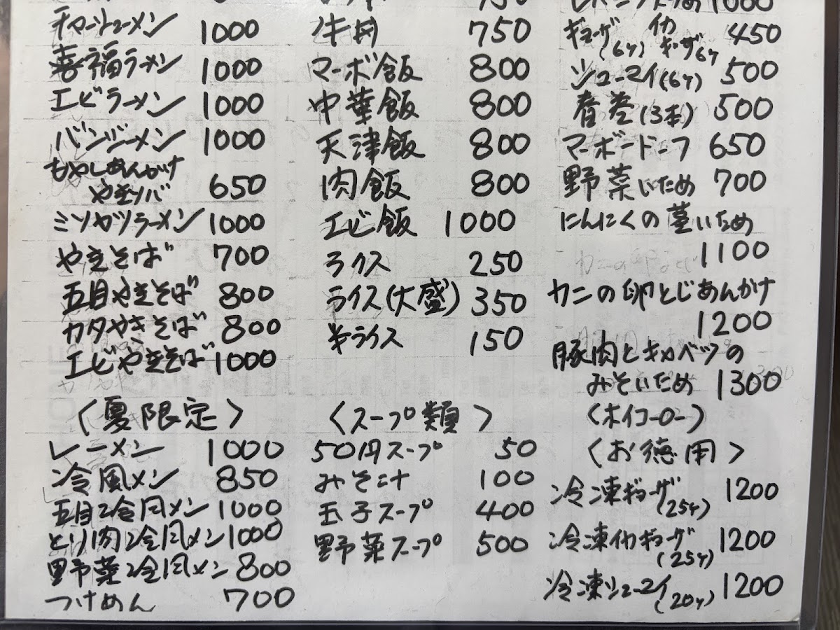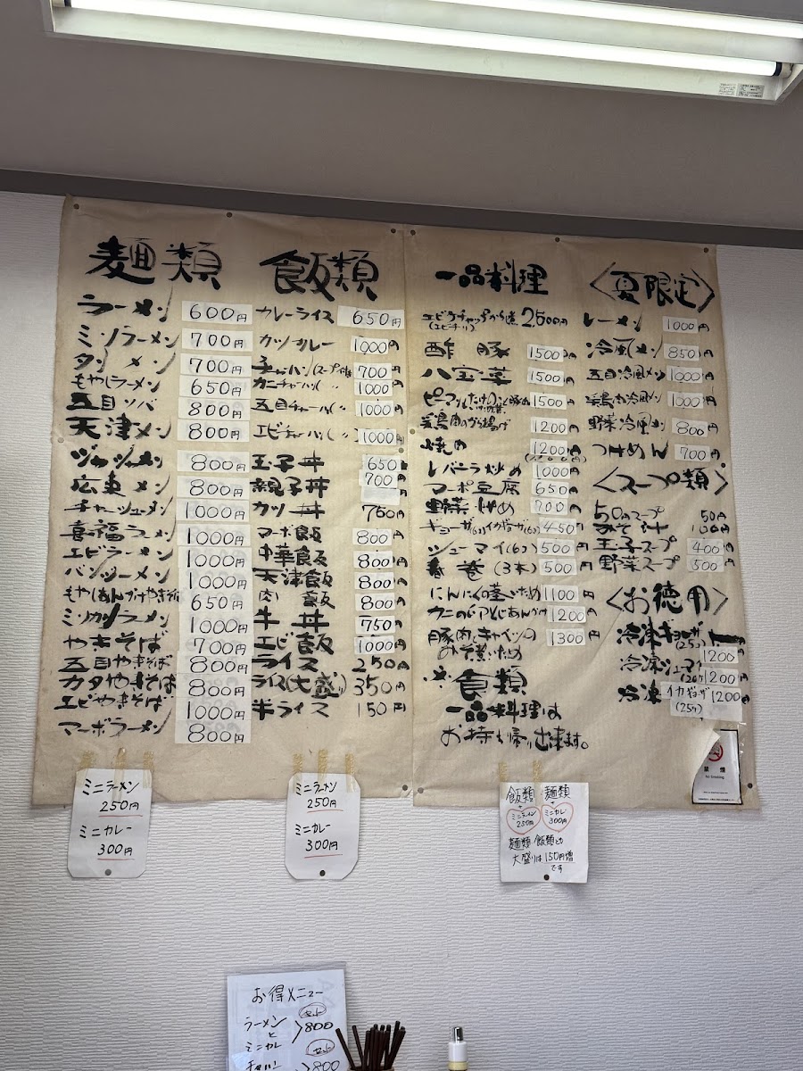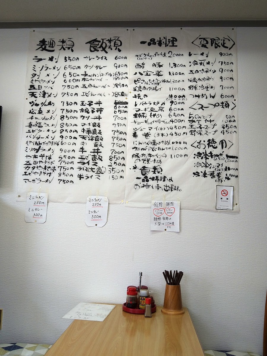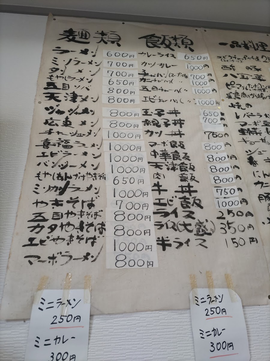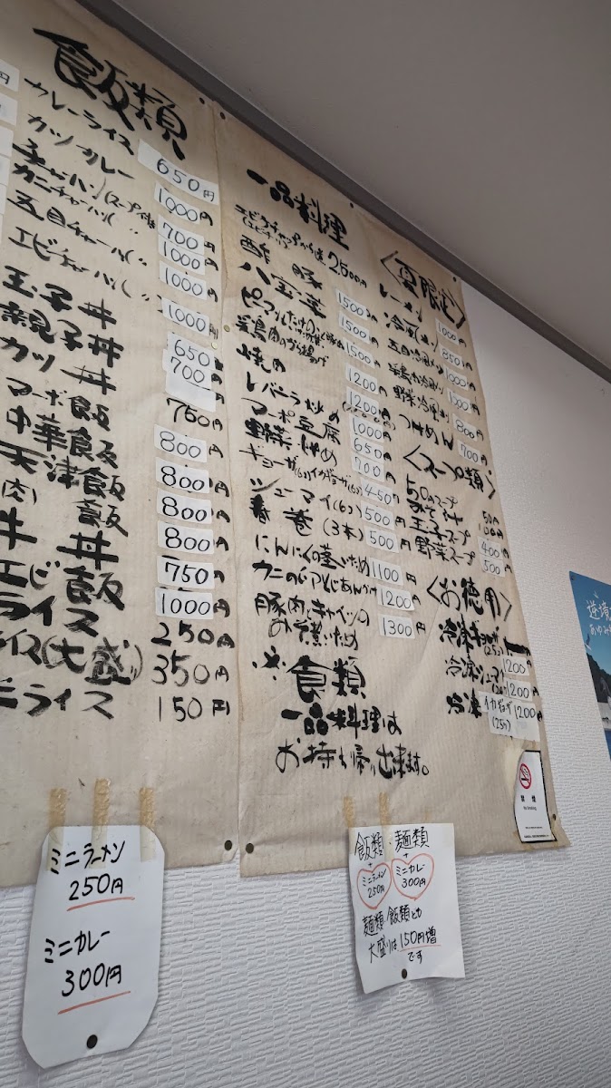 The menu also includes 焼売, steamed dumplings, and the comforting かつ丼大盛り700円, which comes with a side of rice and miso soup. For those seeking variety, the 五目炒飯セット combines fried rice with other sides to create a fulfilling meal. Finally, the 親子丼とミニラーメン is a satisfying set meal with chicken and egg on rice paired with a mini ramen.